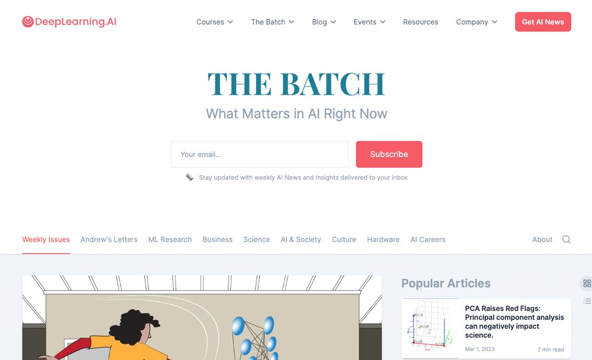 The Batch newsletter is run by DeepLearning.AI, an education company that's all about preparing the world for an AI-powered future.Blogs and Newsletters